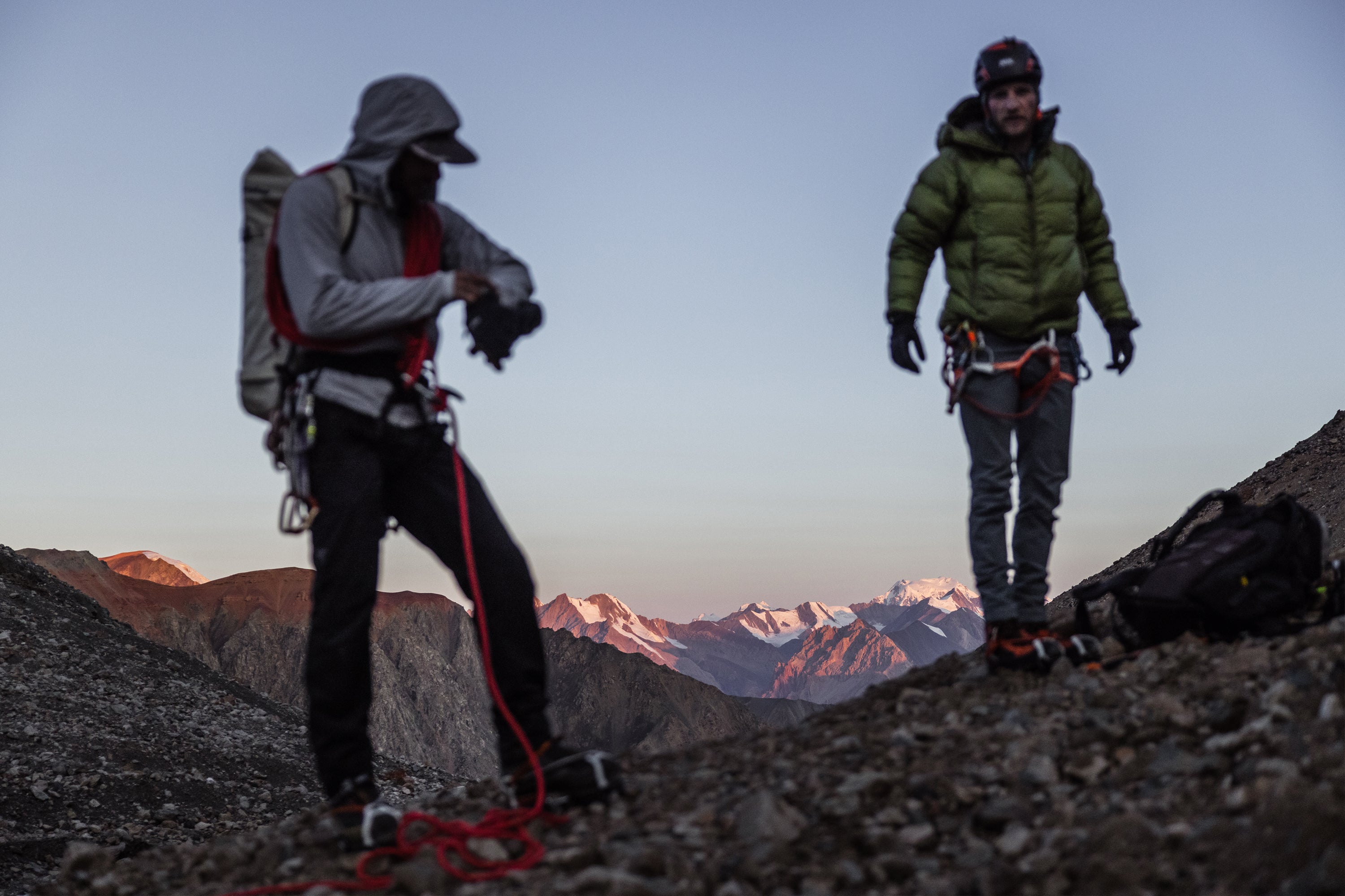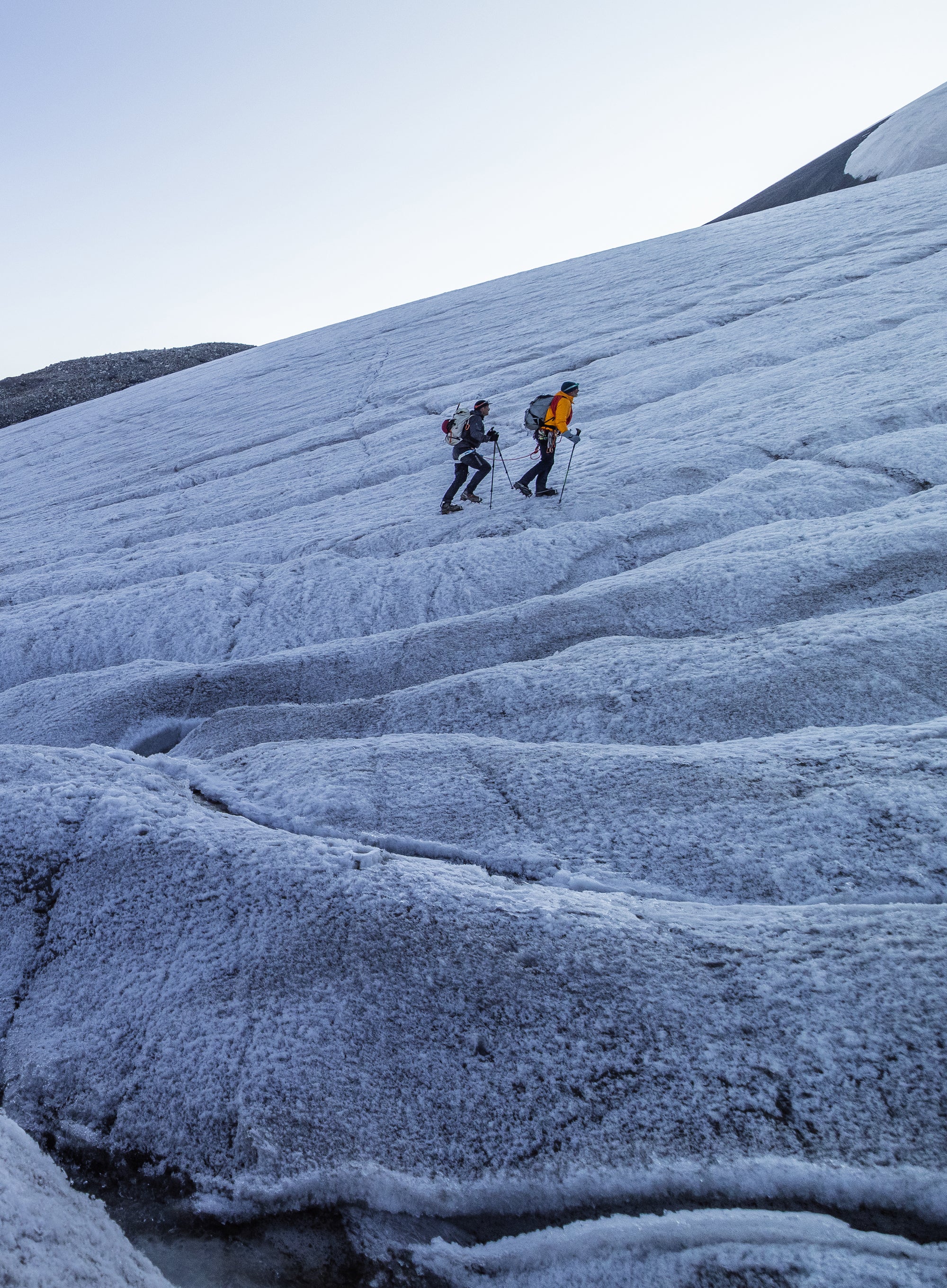 Alarms went at 04:30. We ate by headlamp, checked boots, crampons, ropes and cameras, then stepped onto the glacier. The ice was hard and glassy, each crampon bite felt like striking flint. Crevasses opened on both sides, some obvious, others skinned over by thin bridges.