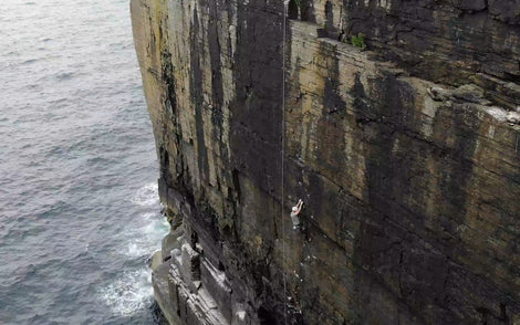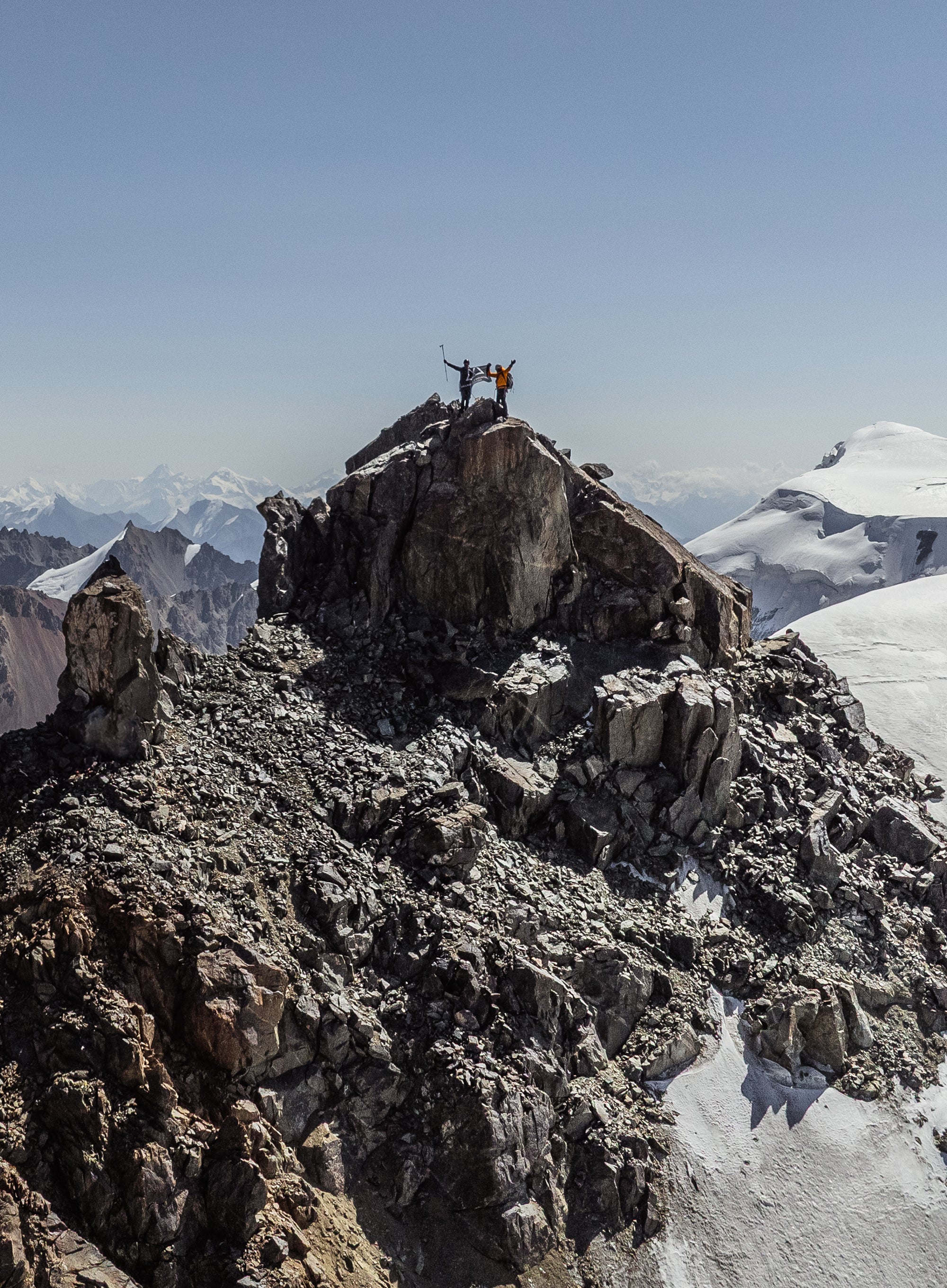 At a small shoulder below the top, Jake and I held position to fly drones for the final push so we could frame Ed on the skyline. Ade stayed just behind him. From our perch I could see Ed’s cautious shoulders and the tiny adjustments he made to protect his weaker side. He topped out. As he raised his arms in triumph, a golden eagle lifted out of the valley and began to circle above the summit. It felt unreal and somehow perfect, a quiet crown on a hard won moment.