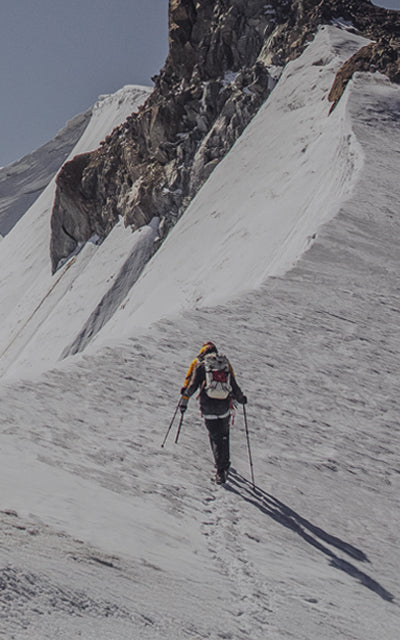 Higher up the ridge pinched to a knife edge of wind-packed snow, with short rock steps that forced quick switches from kicking steps to brief scrambles. There was no beta, no fixed line, only Ade and Paul’s judgment and our spacing. The year before we’d been on the Matterhorn - a 22 hour epic. It was brutal, but it was mapped, with known anchors, queues at cruxes, and a rhythm you could settle into. Here there were no footprints to follow. Every crest was a question. It felt wilder and lonelier, and it asked more of our decision making.