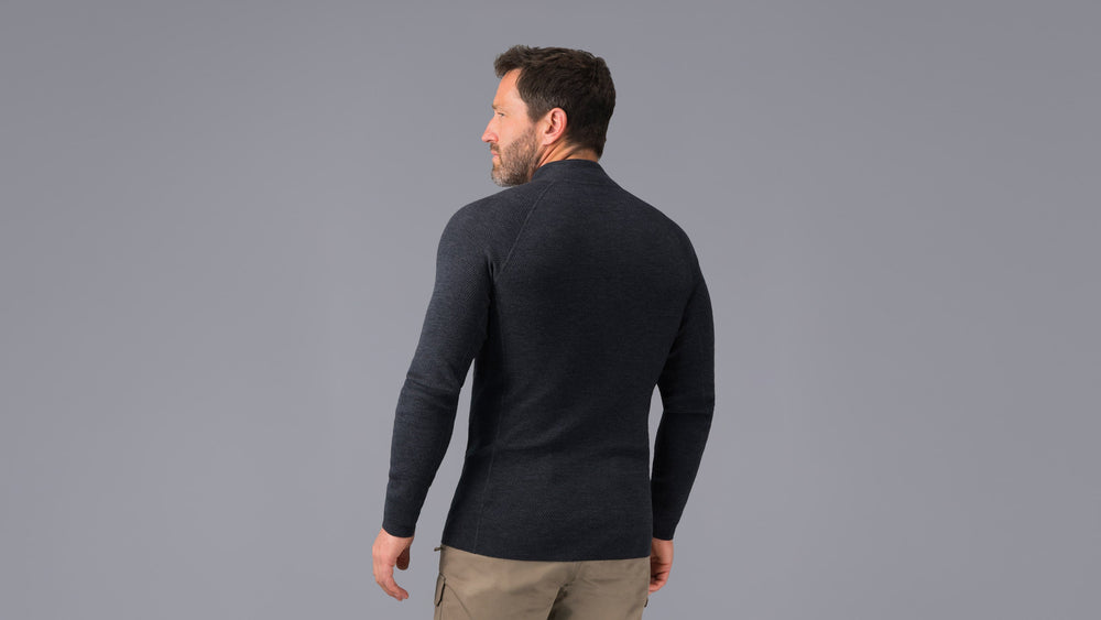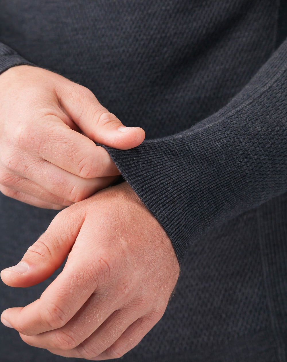Our 19.5-micron extrafine merino offers an exquisitely soft, silky feel and resilient shape retention. A fully-fashioned, zero-waste build lays seams smoother against the skin for luxurious comfort and a polished finish.