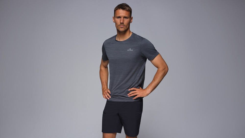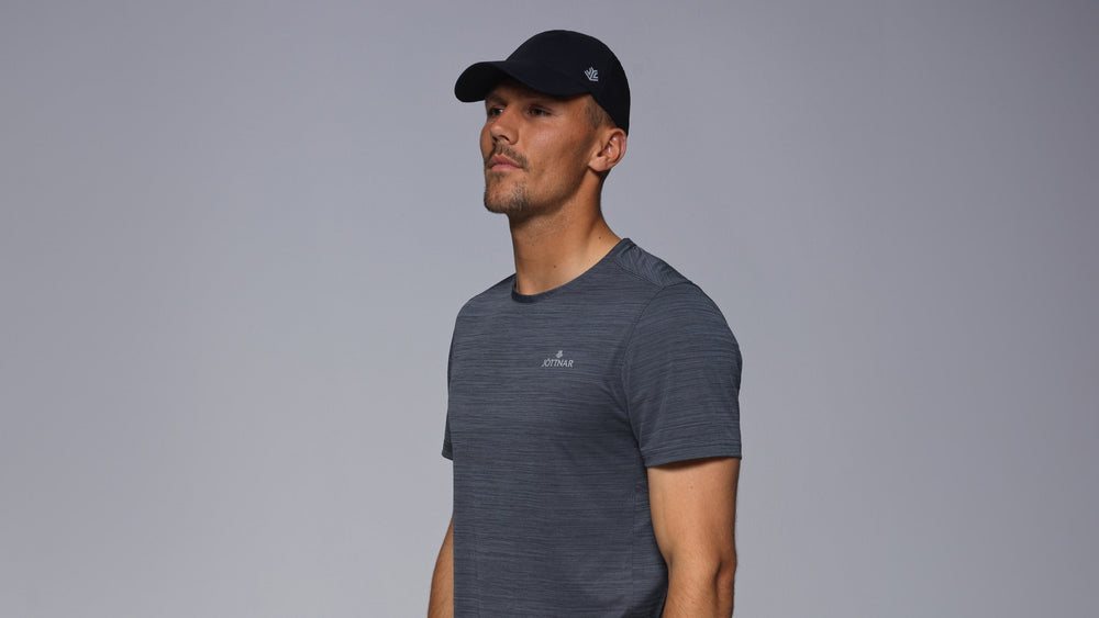 Fara’s flatlocked seams, stretch mélange knit fabric, and seamless underarm panel, provide superior next-to-skin comfort, freedom of movement and a sleek finish. Reflective Jöttnar chest logo; Mjolnir logo rear.