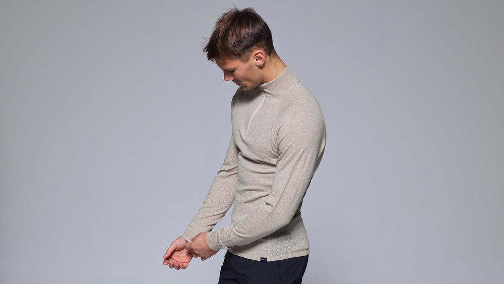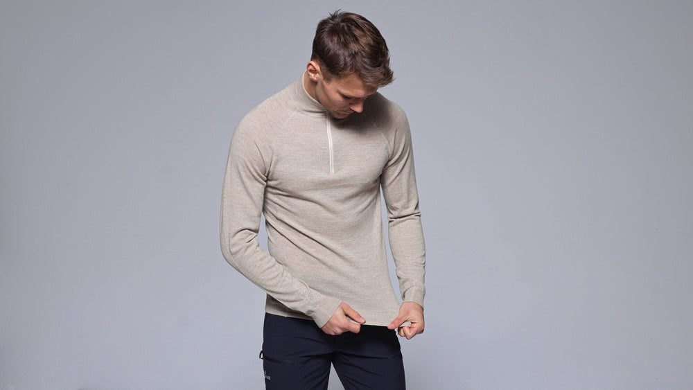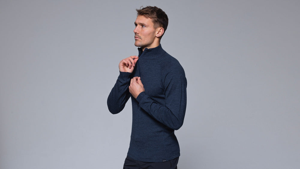 Our extrafine merino yarns use fibres of 19.5 microns or under, making them extremely fine. Renowned for an exquisitely soft and silky feel, while retaining shape with a natural bounce. Due to Heimdall's fully-fashioned build, the flatlock seams lie smoother against the skin, giving optimum comfort, freedom of movement and a luxurious, polished look. Perforated side and underarm panels enhance airflow, and the double layered rib collar gives wind-blocking warmth with natural stretch. Finished with a reverse coil, auto-lock half-zip for better longevity and ease of use.
