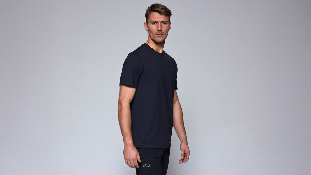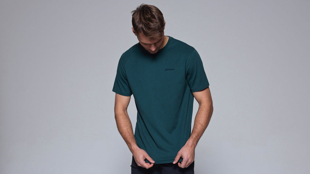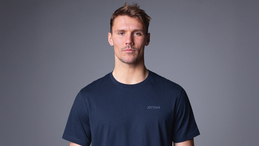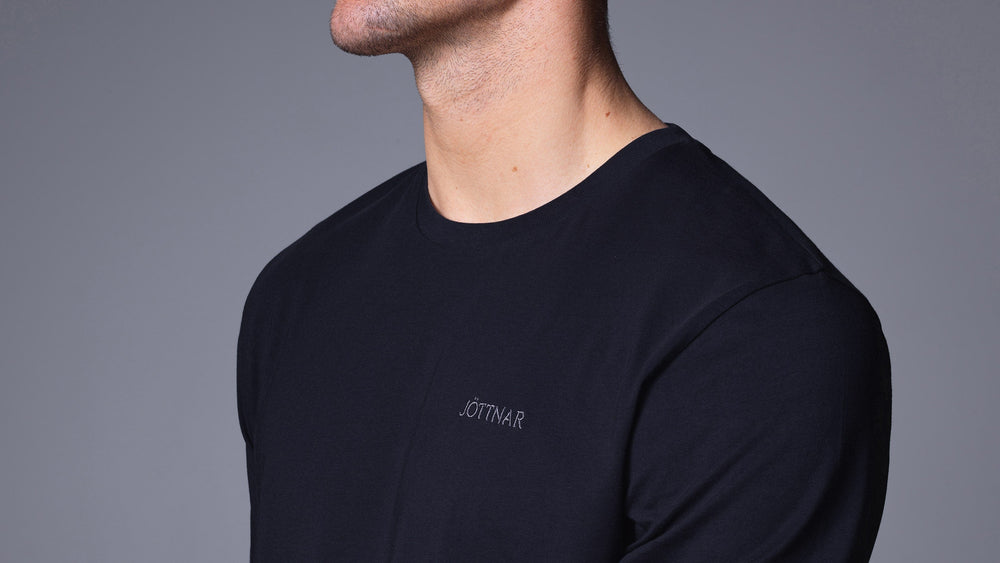 Featuring an embroidered Jöttnar chest logo and Mjolnir back neck emblem, plus a branded woven tab label at the hem.