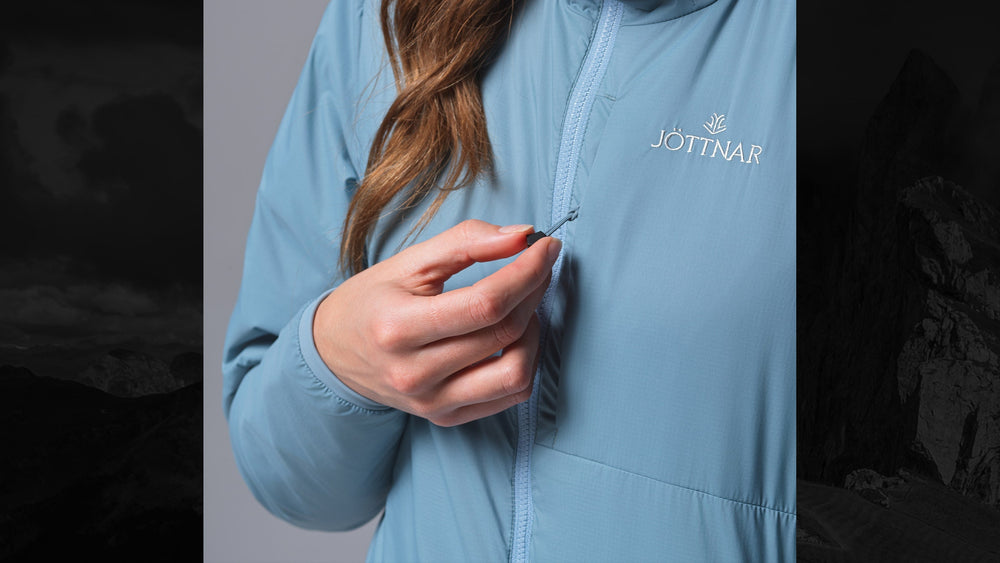 Features include a new barely-there stretch hood band for under-helmet comfort, elasticated hood aperture with front peak, harness-compatible fleece-lined pockets, a secure chest and internal pocket, plus Jöttnar’s anti-snag hem cords, technical stretch cuffs and YKK® zips.