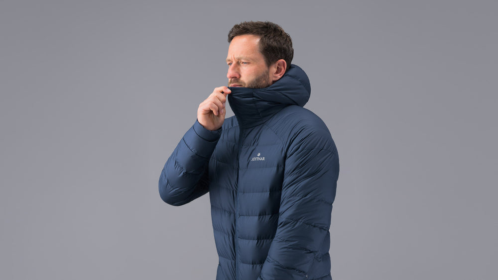 A year-round alpine workhorse. Thorne is a relentlessly capable deep-baffled jacket engineered to endure the daily punishment of winter. Filled with 750 Fill Power hydrophobic goose down, fully extended into the hood for full - coverage warmth. It packs down light yet is a powerhouse piece for ski touring, winter trekking, and alpine climbing.